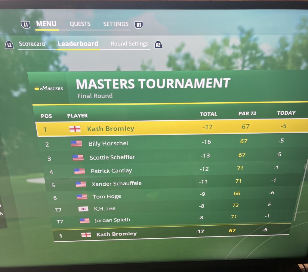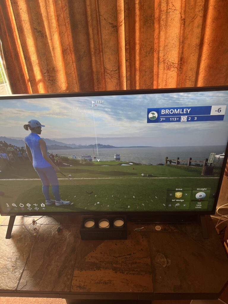 At first I found it quite overwhelming & wasn’t sure where to start so I decided to play each of the 39 courses. I was struggling to use the controller right stick but things improved greatly when I discovered the controller 3 click swing method. Instead of hitting the ball into the crowd or the trees or the really heavy rough I started to find more fairways off the tee and my scores got better & better.